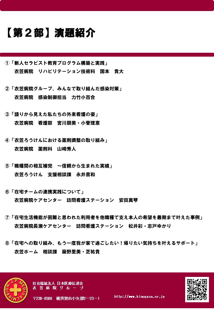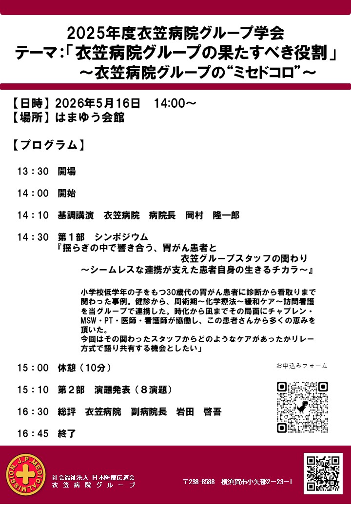 グループの役割や魅力を知っていただく場として「衣笠病院グループ学会」を開催いたします。